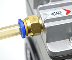 2.進氣口接1/4-12NPT或1/2-20NPT接頭或者其它規格接頭和進氣過濾消音器等裝置,接好管子;出氣口接管或消音器。