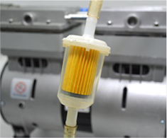 3、安裝消音器:將其安裝在進氣口處的橡膠管中間。