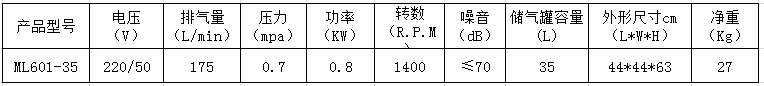 8.本產品為臺冠ML601-35無油空氣壓縮機,嚴禁加油潤滑。